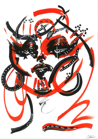 I predominantly work digitally now due to speed and ease but I still love working with pen (or brush) to some good thick paper. I use liquid acrylic pigments to achieve a fast drying and opaque finish and my paintings usually come naturally with no planning involved. This page is dedicated to the spontaneous creations when I sit in front of my pad and want nothing more than just to be an artist.